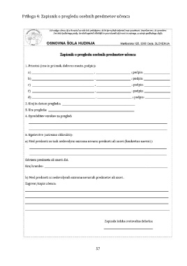 Priloga 4: Zapisnik o pregledu osebnih predmetov učenca 57