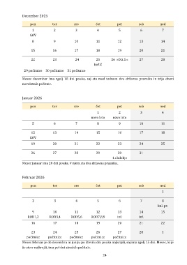 Mesec januar ima 20 dni pouka. V njem sta dva državna praznika.