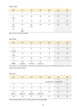 Mesec maj ima 20 dni pouka. V njem sta dva državna praznika.