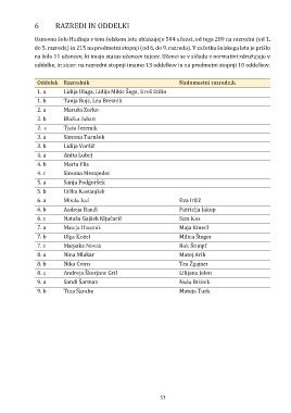 oddelke, in sicer: na razredni stopnji imamo 13 oddelkov in na predmetni stopnji 10 oddelkov.
