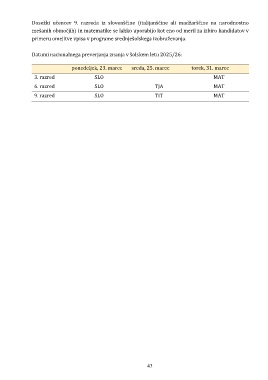 Datumi nacionalnega preverjanja znanja v šolskem letu 2025/26: